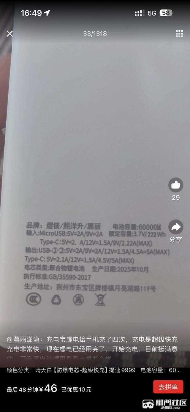 拼多多上看到这个充电宝的地址,大家看生产地址铭牌是真的假的。