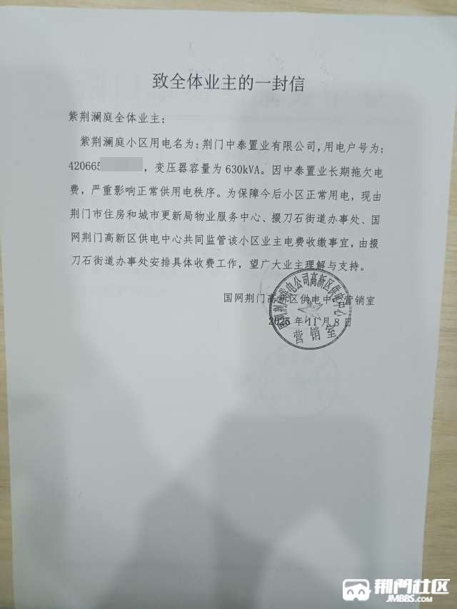 [消费投诉] 紫荆澜庭小区物业收了电费不交意欲何为?