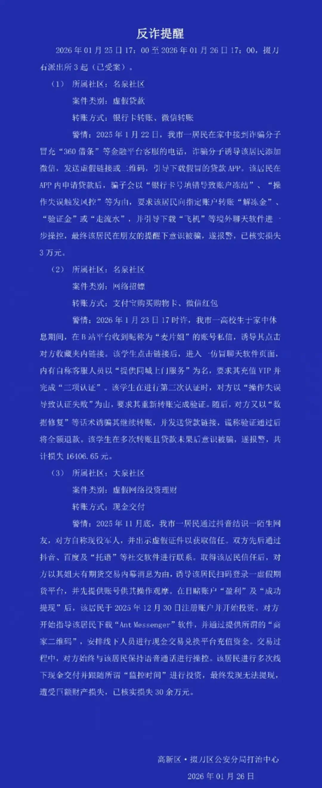 [街谈巷议] 虚假网络投资损失30余万元!事发掇刀!还有两起…反诈提醒!