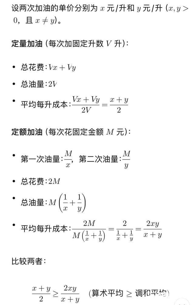 当油价出现波动时,不考虑其他因素,定额加油(比如每次加200元)一定比定量加油更划算(比如每次加满),证明过程如下: